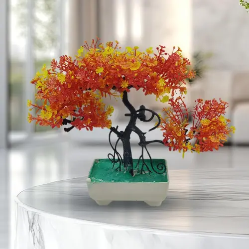 Bring a refreshing natural vibe to your interior with this Artificial Bonsai Tree Set. Featuring vibrant green, yellow, and orange foliage, these decorative bonsai plants instantly brighten any space while adding a modern and elegant touch. Each plant is placed in a durable plaster pot, giving it a stylish and sturdy base that blends beautifully with different décor styles.