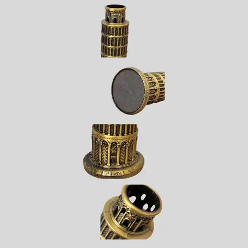 Bring a touch of European elegance to your space with the Leaning Tower Pisa Model. Beautifully crafted from durable metal with an antique golden finish, this decorative piece replicates the iconic Leaning Tower of Pisa with impressive detailing. Its classic design adds a sophisticated and artistic charm to any home or office setting.